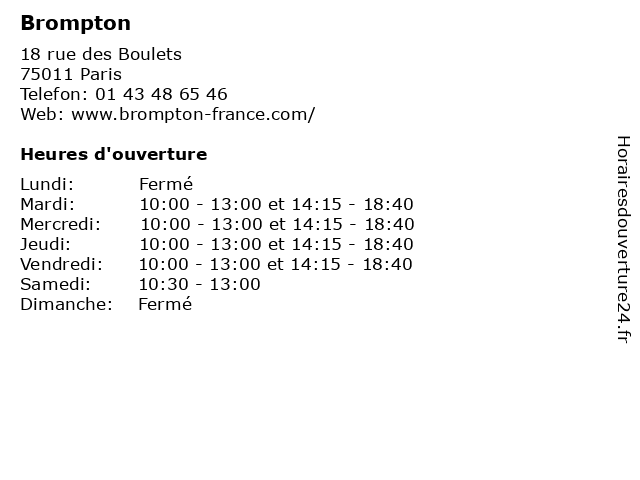 | Mercredi | 10:00-13:00 et 14:15-18:40 |
