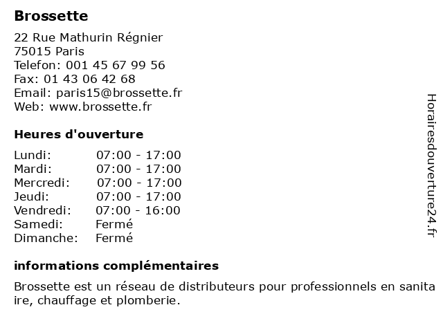 | Lundi | 07:00-17:00 |
