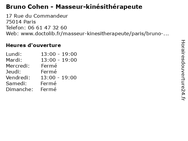 | Lundi | 13:00-19:00 |