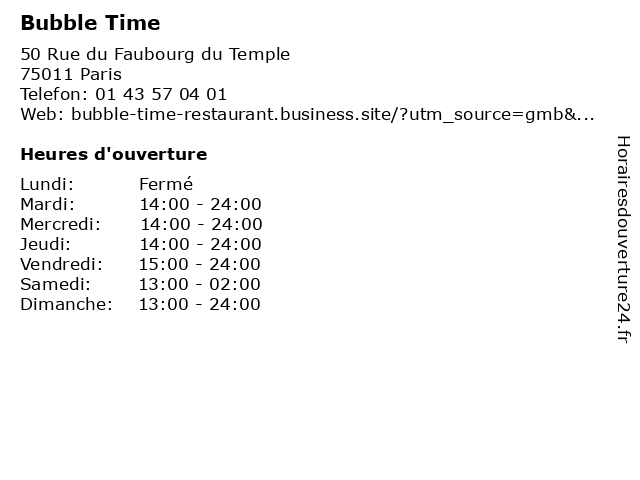 | Samedi | 13:00-02:00 |