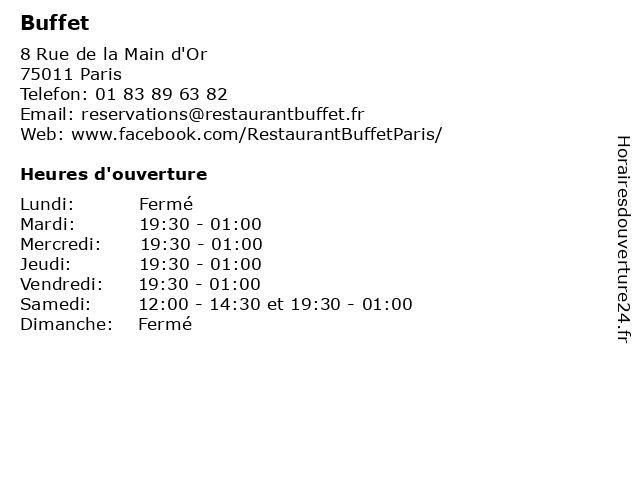 | Samedi | 12:00-14:30 et 19:30-01:00 |