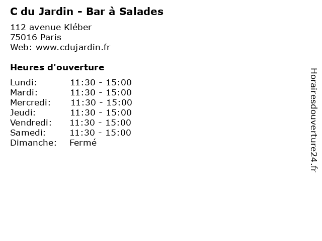 Termes de recherche pour C du Jardin - Bar à Salades:restauration, restaurant, du, boissons, bar, sandwich, salades, jardin, c' |