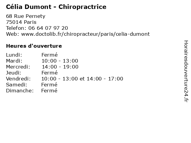 1 Floriane Lorho - Chiropractrice (Distance: 0,74 km) 7 Rue Lecuirot, 75014 Paris chiropractrice, chiroprateur, chiropraticien, floriane, lorho, sante, soins 2 Crèche collective Santos Dumont (Distance: 0,89 km) 31 Rue Santos Dumont, 75015 Paris collective, crèche, crèches, dumont, santos, services, services à la personne 3 Atelier Célia Granger (Distance: 1,24 km) 22 rue Mayet, 75006 Paris atelier, célia, fabricant, granger, maroquinerie, paris 4 Audrey Ranoarimanana - Chiropractrice (Distance: 1,29 km) 15 Rue François Villon, 75015 Paris audrey, chiro, chiropracteur, chiropractrice, ranoarimanana, sante, soins 5 Audrey Deberdt - Chiropractrice (Distance: 2,20 km) 6 Rue François Coppée, 75015 Paris audrey, chiropractrice, chiroprateur, chiropraticien, deberdt, sante, soins 6 Maître Célia Jiquel - Avocate (Distance: 2,75 km) 45 Rue Saint-Dominique, 75007 Paris avocat, avocate, célia, droit, jiquel, maître, négociation |