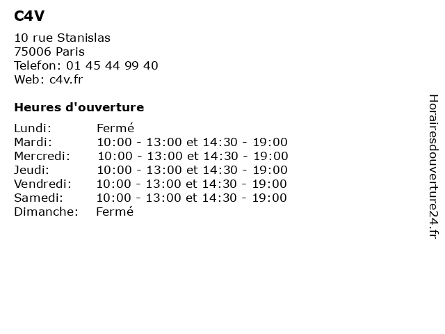 | Samedi | 10:00-13:00 et 14:30-19:00 |