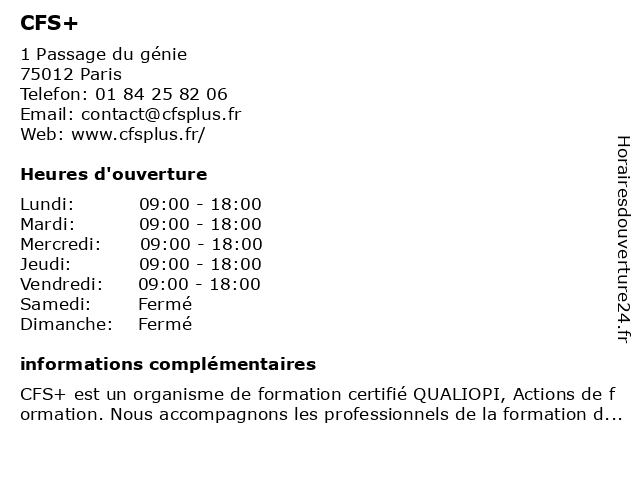 | Samedi | Fermé |