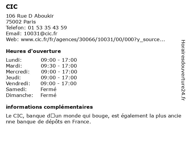 1 CIC (Distance: 0,44 km) 15 Rue Bachaumont, 75002 Paris cic, compagnie de téléphone, organisme d'assurance 2 CIC (Distance: 0,45 km) 15 Rue Bachaumont, 75002 Paris cic, compagnie de téléphone, organisme d'assurance 3 CIC (Distance: 0,53 km) 11 Rue De Turbigo, 75001 Paris cic, compagnie de téléphone, organisme d'assurance 4 CIC (Distance: 0,90 km) 201 Rue Du Temple, 75003 Paris cic, compagnie de téléphone, organisme d'assurance 5 CIC (Distance: 1,00 km) 93 Rue La Fayette, 75010 Paris cic, compagnie de téléphone, organisme d'assurance 6 CIC (Distance: 1,08 km) 11 b Boulevard Haussmann, 75009 Paris cic, compagnie de téléphone, organisme d'assurance |