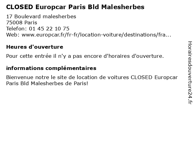 | Appeler CLOSED Europcar Paris Bld Malesherbes | |