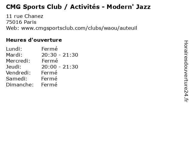 Termes de recherche pour CMG Sports Club / Activités - Modern' Jazz:fitness, club, sports, cmg, outdoor, jazz, health, activités, exercise, modern', physical activities |