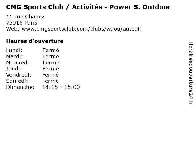 1 CMG Sports Club (Distance: 0,00 km) 11 rue Chanez, 75016 Paris club, cmg, exercise, fitness, health, outdoor, physical activities, sports 2 CMG Sports Club - Horaires D'Ouverture de la Piscine (Distance: 0,00 km) 11 rue Chanez, 75016 Paris club, cmg, d'ouverture, de, exercise, fitness, health, horaires, la, outdoor, physical activities, piscine, sports 3 CMG Sports Club / Activités - Aqua Cycling (Distance: 0,00 km) 11 rue Chanez, 75016 Paris activités, aqua, club, cmg, cycling, exercise, fitness, health, outdoor, physical activities, sports 4 CMG Sports Club / Activités - TRX Blast (Distance: 0,00 km) 11 rue Chanez, 75016 Paris activités, blast, club, cmg, exercise, fitness, health, outdoor, physical activities, sports, trx 5 CMG Sports Club / Activités - Aqua Training (Distance: 0,00 km) 11 rue Chanez, 75016 Paris activités, aqua, club, cmg, exercise, fitness, health, outdoor, physical activities, sports, training 6 CMG Sports Club / Activités - Basic Forme (Distance: 0,00 km) 11 rue Chanez, 75016 Paris activités, basic, club, cmg, exercise, fitness, forme, health, outdoor, physical activities, sports |