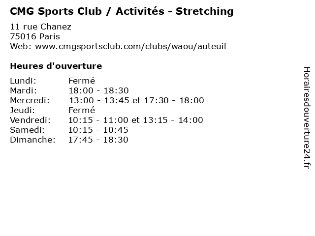Termes de recherche pour CMG Sports Club / Activités - Stretching:fitness, club, sports, cmg, outdoor, health, activités, exercise, stretching, physical activities |