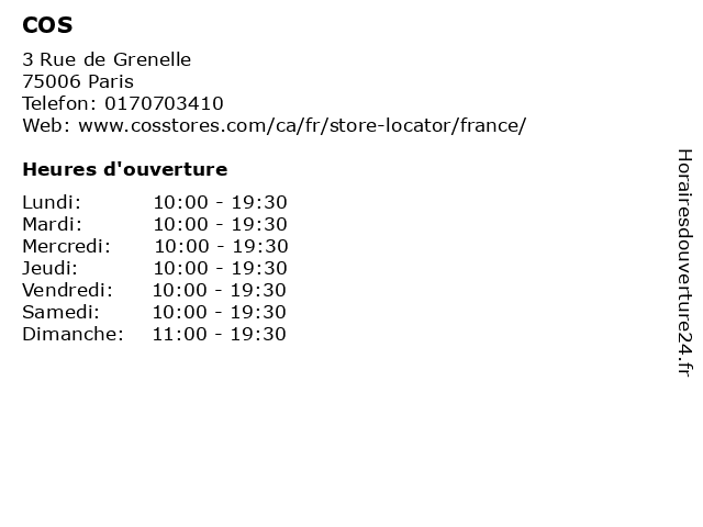 4 COS (Distance: 2,38 km) 40 Boulevard Haussmann, 75009 Paris cos, vêtements pour femmes, vêtements pour hommes 5 COS (Distance: 2,39 km) 64 Boulevard Haussmann, 75009 Paris cos, vêtements pour femmes, vêtements pour hommes 6 |