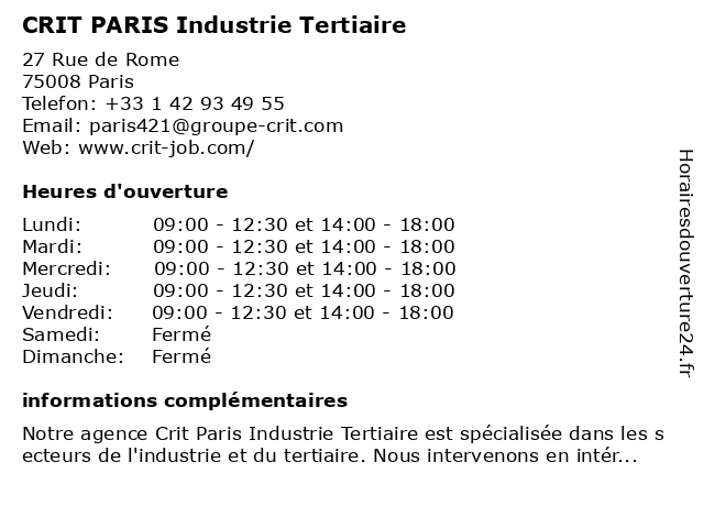 Termes de recherche pour CRIT PARIS Industrie Tertiaire:paris, industrie, tertiaire, crit |