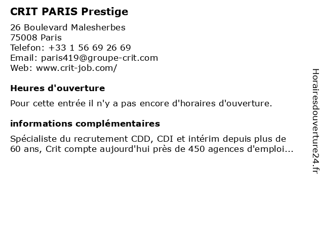 | Appeler CRIT PARIS Prestige | |