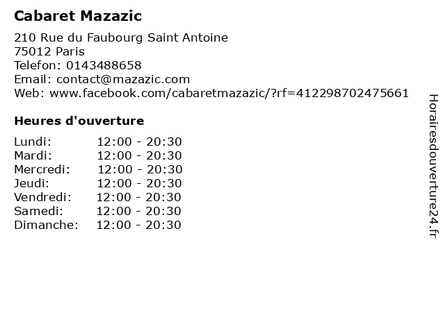 1 Cantada II - Cabaret du Néant (Distance: 2,01 km) 13 Rue Moret, 75011 Paris alcool, bar, cabaret, cantada, club, cocktail, du, ii, néant, restauration 2 L'Eurydice Cabaret (Distance: 2,69 km) 79 Rue du Cardinal Lemoine, 75005 Paris alcool, bar, cabaret, cocktails, l'eurydice, nuits 3 Restaurant-Cabaret Le Chalet (Distance: 2,91 km) 19 Rue De La Fraternite, 93170 Bagnolet bar, bistro, bistrot, brasserie, cabaret, café, chalet, le, pub, restaurant, restauration, resto 4 Cabaret Michou (Distance: 5,02 km) 80 Rue Des Martyrs, 75018 Paris cabaret, exploitation, michou, restaurants 5 Cabaret Valerie Therese (Distance: 10,24 km) 52 Rue Henri Barbusse, 92230 Gennevilliers cabaret, restaurants, therese, valerie 6 Restaurant Fu Yuan (Distance: 0,49 km) 66 Boulevard Diderot, 75012 Paris asiatique, collations, fu, restaurant, restaurants, yuan |