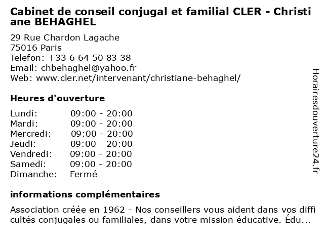 Termes de recherche pour Cabinet de conseil conjugal et familial CLER - Christiane BEHAGHEL:et, de, cabinet, conseil, familial, christiane, cler, behaghel, conjugal |