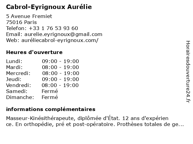 1 Aurélie Broc - Psychologue (Distance: 0,40 km) 12 Rue Nélaton, 75015 Paris aurélie, broc, folie, psychiatre, psychiatrie, psychiatrique, psychologue 2 Aurélie Torres - Masseur-kinésithérapeute (Distance: 0,41 km) 16 Rue Vineuse, 75116 Paris aurélie, bien-être, en, forme, kinésithérapeute, kinésithérapie, masseur, remise, rééducation, torres 3 Aurélie Vandecasteele - Psychologue (Distance: 0,56 km) 33 Rue Vital, 75116 Paris aurélie, folie, psychiatre, psychiatrie, psychiatrique, psychologue, vandecasteele 4 Maître Aurélie Hardoin - Avocate (Distance: 0,56 km) 3 Avenue Paul Doumer, 75116 Paris aurélie, avocate, avocats, cabinet, conseils, contentieux, hardoin, juridique, justice, litiges, maître, services 5 Aurélie Petitpas - Masseur-kinésithérapeute (Distance: 0,89 km) 61 Rue Saint-Charles, 75015 Paris aurelie, aurélie, consultation, docteur, kinésithérapeute, masseur, med, médecin, médecine, petitpas, traitement 6 Aurélie Thomas-Escourbiac - Diététicien (Distance: 1,14 km) 38 Bis Rue des Entrepreneurs, 75015 Paris aurélie, cabinet, diététicien, diététique, escourbiac, medical, secrétariat, thomas  |