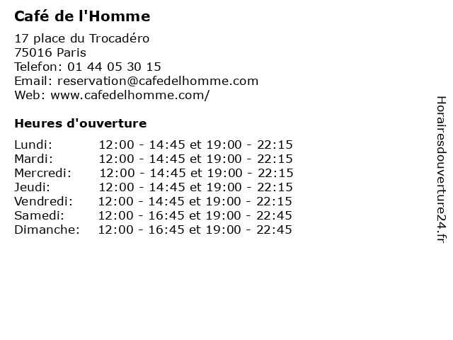 Termes de recherche pour Café de l'Homme:restauration, restaurant, café, de, bistrot, brasserie, l'homme |