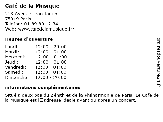 | Dimanche | 12:00-20:00 |