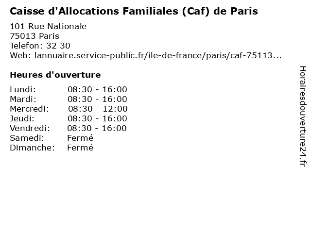 1 Caisse d'Allocations Familiales (CAF) de Paris (Distance: 6,35 km) 67-69 Avenue Jean Jaurès, 75019 Paris accueil, allocations, caf, caisse, d'allocations, de, familiales, laumière, paris 2 Caisse d'Allocations Familiales (CAF) de Paris (Distance: 6,39 km) 50 Rue du Docteur Finlay, 75015 Paris accueil, allocations, caf, caisse, d'allocations, de, familiales, finlay, paris 3 Caisse d'Allocations Familiales (CAF) de Paris (Distance: 7,32 km) 47 Rue de la Chapelle, 75018 Paris accueil, allocations, caf, caisse, chapelle, d'allocations, de, familiales, la, paris 4 Caisse d'Epargne (Distance: 0,36 km) 116 Rue de Patay, 75013 Paris assurances, banques, caisse, d'epargne, services 5 Caisse d'Epargne (Distance: 0,47 km) 3 Rue des Frères d'Astier, 75013 Paris assurances, banques, caisse, d'epargne, services 6 Caisse Primaire D'Assurance Maladie (Distance: 0,62 km) 20-22 Avenue d'Ivry, 75013 Paris administration, assoc, caisse, d'assurance, maladie, primaire, services, services publics |