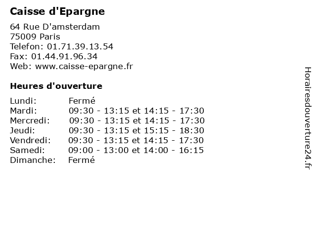 1 Caisse d'Epargne (Distance: 0,54 km) 13 Place du Havre, 75008 Paris assurances, banques, caisse, d'epargne, services 2 Caisse d'Epargne (Distance: 0,94 km) 16 Rue Halevy, 75009 Paris assurances, banques, caisse, d'epargne, services 3 Caisse d'Epargne (Distance: 1,23 km) 51 Avenue de Saint Ouen, 75017 Paris assurances, banques, caisse, d'epargne, services 4 Caisse d'Epargne (Distance: 1,43 km) 62 Rue de Rochechouart, 75009 Paris assurances, banques, caisse, d'epargne, services 5 Caisse d'Epargne (Distance: 1,49 km) 3 Rue du Quatre Septembre, 75002 Paris assurances, banques, caisse, d'epargne, services 6 Caisse d'Epargne (Distance: 1,79 km) 33 Boulevard Barbes, 75018 Paris assurances, banques, caisse, d'epargne, services |