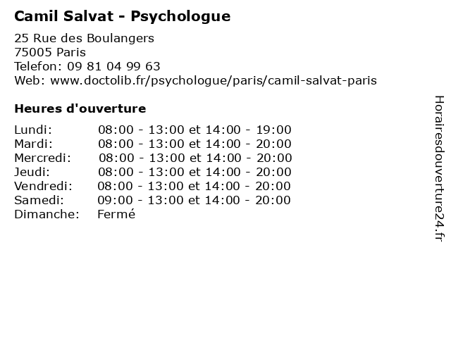 | Lundi | 08:00-13:00 et 14:00-19:00 |