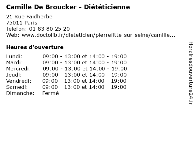 | Lundi | 09:00-13:00 et 14:00-19:00 |