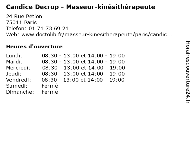 | Mardi | 08:30-13:00 et 14:00-19:00 |