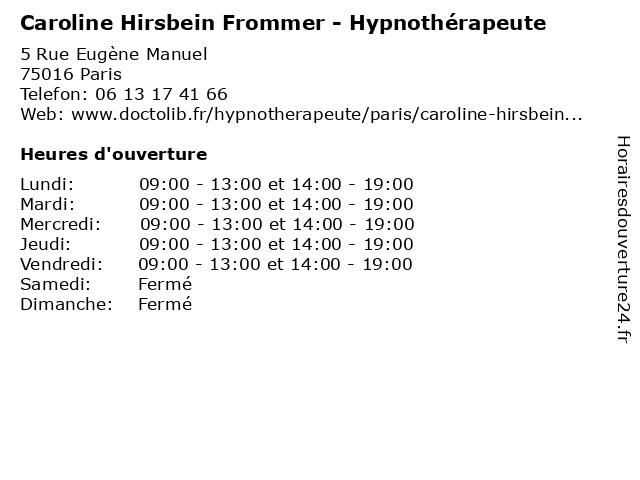 | Lundi | 09:00-13:00 et 14:00-19:00 |