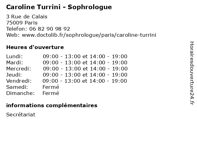 | Lundi | 09:00-13:00 et 14:00-19:00 |