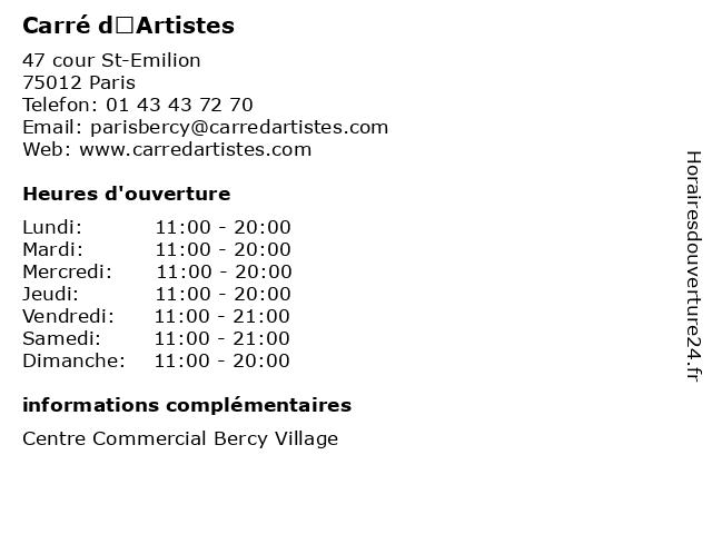 | Mercredi | 11:00-20:00 |