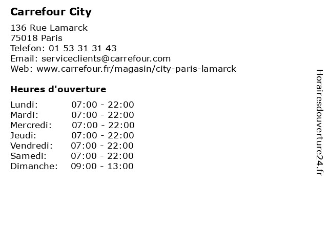 1 Carrefour City (Distance: 0,42 km) 133 Rue Damremont, 75018 Paris alimentaire, alimentation, carrefour, city, courses, distributeur, hypermarché, supermarché, épicerie 2 Carrefour City (Distance: 0,44 km) 39 Avenue de Saint Ouen, 75017 Paris alimentation, carrefour, city, magasin discount, market, supermarché 3 Carrefour City (Distance: 0,90 km) 50-54 Rue Pouchet, 75017 Paris alimentation, carrefour, city, magasin discount, market, supermarché 4 Carrefour City (Distance: 1,09 km) 29-31 Rue Ramey, 75011 Paris alimentaire, alimentation, carrefour, city, courses, distributeur, hypermarché, supermarché, épicerie 5 Carrefour City (Distance: 1,17 km) 175 Avenue de Clichy, 75017 Paris alimentation, carrefour, city, magasin discount, market, supermarché 6 Carrefour City (Distance: 1,44 km) 85 Rue Jouffroy d'Abbans, 75017 Paris alimentation, carrefour, city, magasin discount, market, supermarché |