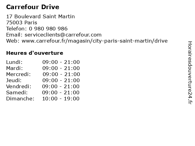 1 Carrefour Drive (Distance: 0,96 km) 6 Rue De Beaubourg, 75004 Paris alimentaire, carrefour, courses, drive, en ligne, magasin 2 Carrefour Drive (Distance: 1,71 km) 43 Rue Richelieu, 75001 Paris alimentaire, carrefour, courses, drive, en ligne, magasin 3 Carrefour Drive (Distance: 2,38 km) 35 Rue De Jussieu, 75005 Paris alimentaire, carrefour, courses, drive, en ligne, magasin 4 Carrefour Drive (Distance: 3,29 km) 1 Rue Haxo, 75020 Paris alimentaire, carrefour, courses, drive, en ligne, magasin 5 Carrefour Drive (Distance: 5,41 km) 166 Boulevard Massena, 75013 Paris alimentaire, carrefour, courses, drive, en ligne, magasin 6 Carrefour Drive (Distance: 7,15 km) 1 Place Jean Spire Lemaitre, 94300 Vincennes carrefour, drive, hypermarche, marche, market |