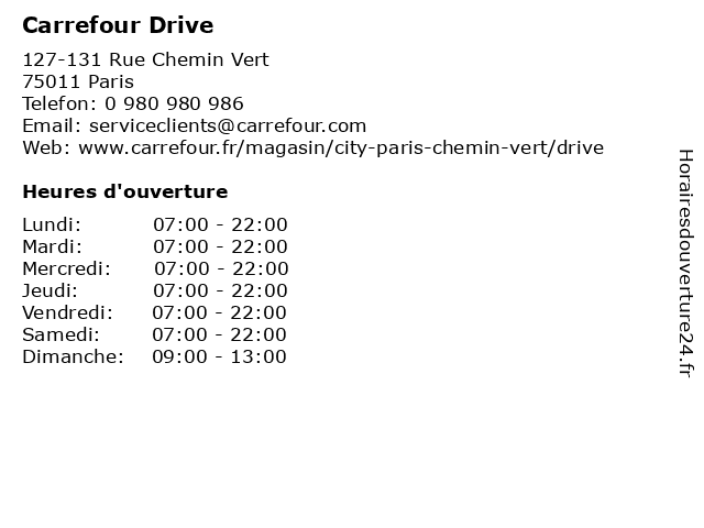 1 Carrefour Drive (Distance: 0,59 km) 39-43 Avenue Parmentier, 75011 Paris alimentaire, carrefour, courses, drive, en ligne, magasin 2 Carrefour Drive (Distance: 1,62 km) 63 Rue Fessart, 75019 Paris alimentaire, carrefour, courses, drive, en ligne, magasin 3 Carrefour Drive (Distance: 2,26 km) 6 Rue De Beaubourg, 75004 Paris alimentaire, carrefour, courses, drive, en ligne, magasin 4 Carrefour Drive (Distance: 3,10 km) 36-44 Rue De Wattignies, 75012 Paris alimentaire, carrefour, courses, drive, en ligne, magasin 5 Carrefour Drive (Distance: 3,85 km) 50 Rue Domremy, 75013 Paris alimentaire, carrefour, courses, drive, en ligne, magasin 6 Carrefour Drive (Distance: 5,28 km) 1 Place Jean Spire Lemaitre, 94300 Vincennes carrefour, drive, hypermarche, marche, market |