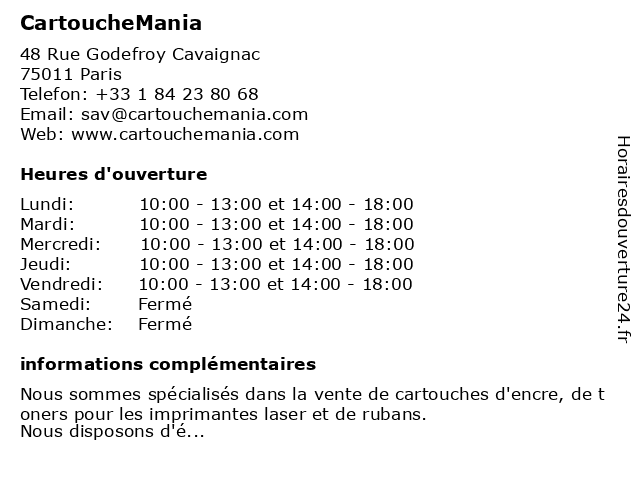 1 Cartouchemania (Distance: 12,80 km)3 Avenue des Orangers, 94380 Bonneuil-sur-Marne cartouchemania