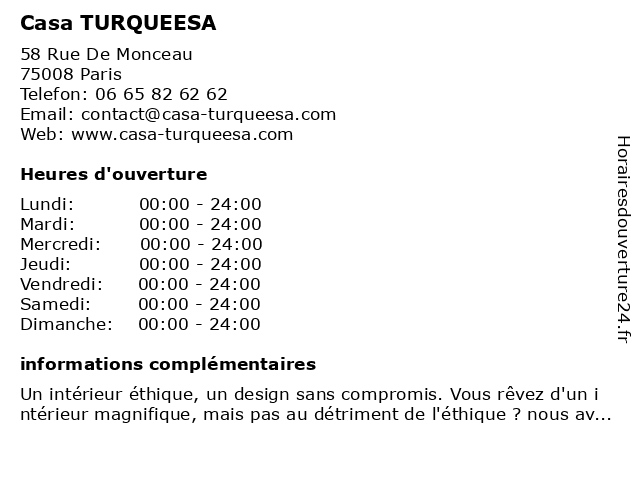 | Samedi | 00:00-24:00 |