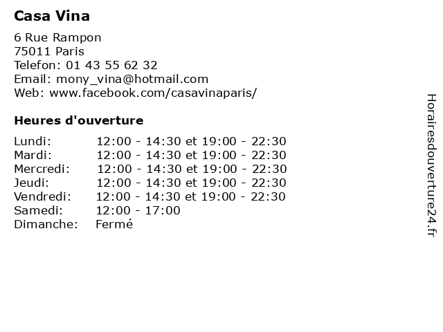| Mardi | 12:00-14:30 et 19:00-22:30 |