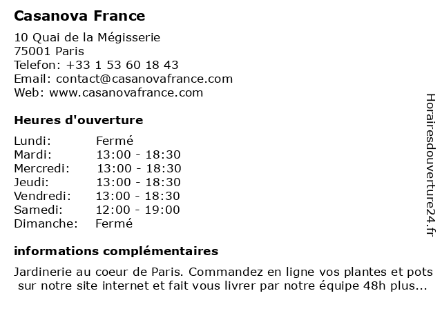 | Mercredi | 13:00-18:30 |