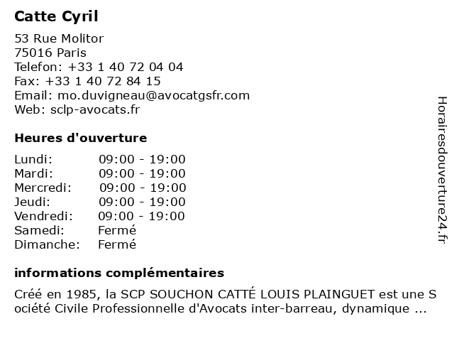1 Maître Cyril Courseau - Avocat (Distance: 0,96 km) 84 Rue Jean de la Fontaine, 75116 Paris avocat, avocats, cabinet, conseils, contentieux, courseau, cyril, juridique, justice, litiges, maître, services 2 Ischia - Cyril Lignac (Distance: 1,33 km) 14 Rue Cauchy, 75015 Paris brasserie, café, cyril, ischia, lignac, restaurant, restauration 3 La Pâtisserie Cyril Lignac (Distance: 3,70 km) 2 rue de Chaillot, 75116 París alimentaire, boulangeries, boulangers, chaillot, cyril, la, lignac, pains, patisserie, pâtisserie, pâtissières 4 Dr Cyril Chaufton - Oto-rhino-laryngologie - secrétariat (Distance: 3,90 km) 40 Rue Worth, 92150 Suresnes chaufton, cyril, dr, laryngologie, médecins, médicaments, orthoptiste, oto, rhino, santé, secrétariat, spécialiste 5 La Pâtisserie - Cyril Lignac (Distance: 3,96 km) 55 Boulevard Pasteur, 75015 Paris chocolat, cyril, la, lignac, macarons, pain, pâtisserie, viennoiseries 6 Garage Cyril Auto (Distance: 3,98 km) 13 Rue Manissier, 92800 Puteaux auto, automobile, cyril, entretien, garage, vente, voiture |