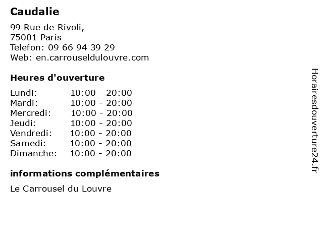 1 Caudalie (Distance: 1,12 km) 80 Rue des Saints-Pères, 75007 Paris boutique, caudalie, cosmétique, crème, soin, spa 2 Caudalie (Distance: 2,28 km) 8 rue des Francs-Bourgeois, 75003 Paris boutique, caudalie, cosmétique, crème, soin, spa 3 Caudalie (Distance: 2,63 km) 30 Rue des Abbesses, 75018 Paris boutique, caudalie, cosmétique, crème, soin, spa 4 Spa Caudalie Les Etangs de Corot (Distance: 11,30 km) 55 Rue de Versailles, 92410 Paris caudalie, corot, de, etangs, les, salon, spa 5 A La Tête du Client (Distance: 0,49 km) 154 rue St Honoré, 75001 Paris client, coiffeur mixte, coiffeurs visagistes, du, la, tête 6 Biocoiff’ (Distance: 1,13 km) 10 Rue Marie Stuart, 75002 Paris beauté, biocoiff’, cheveux, coiffeurs, coiffure, salon, soins |