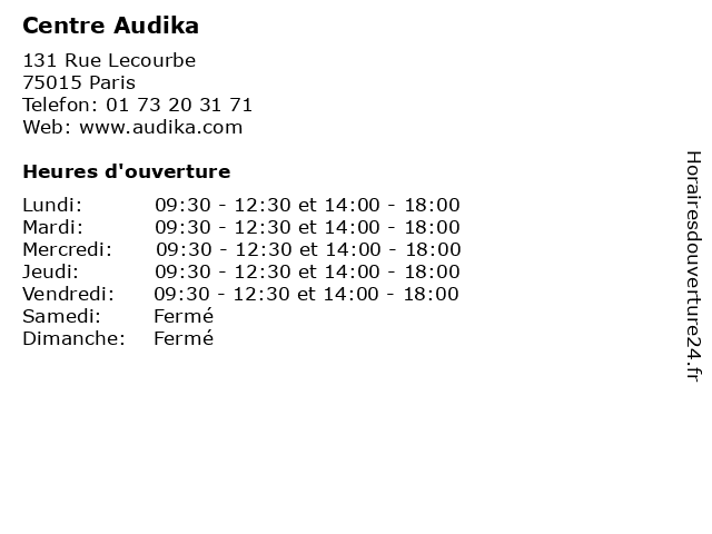 | Mardi | 09:30-12:30 et 14:00-18:00 |