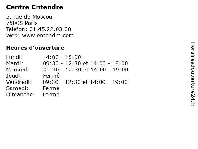 | Mercredi | 09:30-12:30 et 14:00-19:00 |