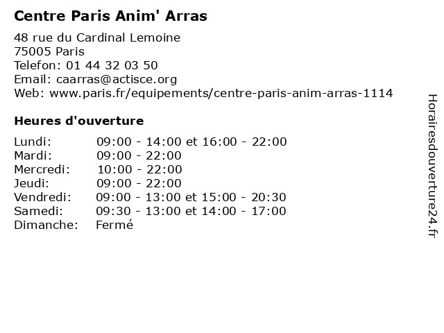 1 Centre Paris Anim' Censier (Distance: 0,67 km) 12 rue Censier, 75005 Paris anim', censier, centre, espace exposition, paris, salle arts plastiques, salle informatique, salles de musique 2 Centre Paris Anim' Pôle Simon Lefranc (Distance: 1,52 km) 9 rue Simon Lefranc, 75004 Paris anim', centre, espace exposition, lefranc, paris, pôle, salle arts plastiques, salle informatique, salles de musique, simon 3 Centre Paris Anim' Rennes (Distance: 1,62 km) 76bis rue de Rennes, 75006 Paris activités, anim', centre, centre d'animation, d'animation, de, equipement, l'heure, paris, photo, rennes, rue, rue de rennes, services, sportives, stages 4 Centre Paris Anim' Maison des Ensembles (Distance: 1,90 km) 3-5 rue d'Aligre, 75012 Paris anim', centre, des, ensembles, espace exposition, maison, paris, salle arts plastiques, salle informatique, salles de musique 5 Centre Paris Anim' Dunois (Distance: 1,92 km) 61 rue Dunois, 75013 Paris anim', centre, dunois, espace exposition, paris, salle arts plastiques, salle informatique, salles de musique 6 Center Paris Anim'Montparnasse (Distance: 2,56 km) 26 allé du Chef d'escadron de Guillebon, 75014 Paris anim'montparnasse, animation, center, centre, montparnasse, paris, paris'anim |