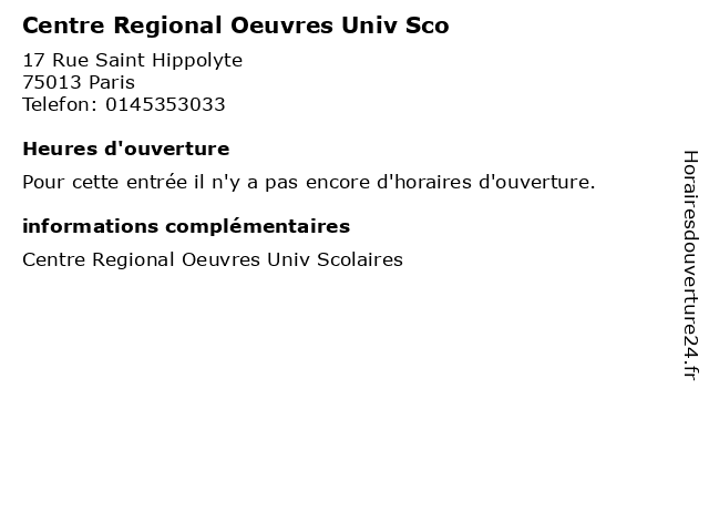 | Appeler Centre Regional Oeuvres Univ Sco | |