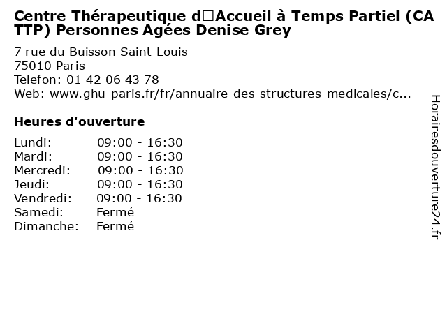Termes de recherche pour Centre Thérapeutique d’Accueil à Temps Partiel (CATTP) Personnes Agées Denise Grey:centre, temps, med, grey, traitement, docteur, médecin, personnes, âgées, consultation, d’accueil, partiel, denise, thérapeutique, cattp |
