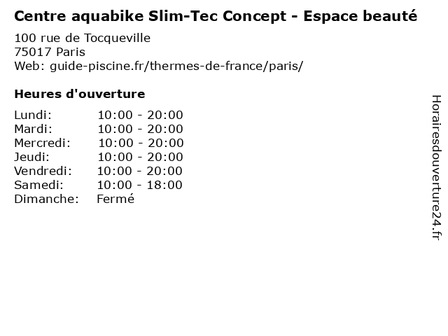 1 Centre aquabike Slim-Tec Concept (Distance: 0,00 km) 100 rue de Tocqueville, 75017 Paris aquabike, aquabiking, centre, concept, massages, sauna, slim, spa, tec 2 Centre aquabike Slim-Tec Concept -Espace détente (Distance: 0,00 km) 100 rue de Tocqueville, 75017 Paris aquabike, aquabiking, centre, concept, détente, espace, massages, sauna, slim, spa, tec 3 Centre Aquabike Seventeen (Distance: 0,27 km) 106 rue Cardinet, 75017 Paris aquabike, aquabiking, centre, massages, sauna, seventeen, spa 4 Osaka Beauté (Distance: 0,27 km) 106 Rue Cardinet, 75017 Paris beauté, cils, coiffure, institut, manucure, maquillage, osaka, soins, épilation 5 Centre aquabike Balnéo Vélo (Distance: 0,28 km) 53 rue Jouffroy d'Abbans, 75017 Paris aquabike, aquabiking, balnéo, centre, massages, sauna, spa, vélo 6 L'Instant Beauté (Distance: 0,80 km) 24 rue des Moines, 75017 Paris beauté, l'instant, services, soins |