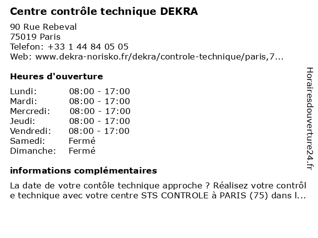 Description de l'entreprise :Préparer votre contrôle techniquePour préparer votre contrôle technique dans notre centre DEKRA de Paris, vous pouvez vérifier en amont différents points comme les pneumatiques, la visibilité, le niveau d'huile ou encore l'habitacle. Pour tout savoir, consultez notre vidéo. Voir l'offre |
