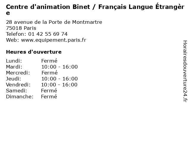 1 Centre d'animation Binet / Abdo-Fessiers/Dos/Cuisses (Distance: 0,00 km) 28 avenue de la Porte de Montmartre, 75018 Paris abdo, binet, centre, centres d'animation, d'animation, equipement, fessiers/dos/cuisses, jardins, l'heure, livre, médiathèque, services 2 Centre d'animation Binet / Aide Aux Devoirs (Distance: 0,00 km) 28 avenue de la Porte de Montmartre, 75018 Paris aide, aux, binet, centre, centres d'animation, d'animation, devoirs, equipement, jardins, l'heure, livre, médiathèque, services 3 Centre d'animation Binet / Anglais (Distance: 0,00 km) 28 avenue de la Porte de Montmartre, 75018 Paris anglais, binet, centre, centres d'animation, d'animation, equipement, jardins, l'heure, livre, médiathèque, services 4 Centre d'animation Binet / Arts Plastiques (Distance: 0,00 km) 28 avenue de la Porte de Montmartre, 75018 Paris arts, binet, centre, centres d'animation, d'animation, equipement, jardins, l'heure, livre, médiathèque, plastiques, services 5 Centre d'animation Binet / Baby Judo (Distance: 0,00 km) 28 avenue de la Porte de Montmartre, 75018 Paris baby, binet, centre, centres d'animation, d'animation, equipement, jardins, judo, l'heure, livre, médiathèque, services 6 Centre d'animation Binet / Chant (Distance: 0,00 km) 28 avenue de la Porte de Montmartre, 75018 Paris binet, centre, centres d'animation, chant, d'animation, equipement, jardins, l'heure, livre, médiathèque, services |
