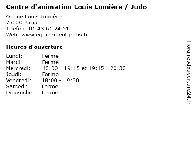 1 Centre d'animation Louis Lumière (Distance: 0,00 km) 46 rue Louis Lumière, 75020 Paris centre, centre d'animation, d'animation, equipement, joyeuse, l'heure, livre, louis, lumière, médiathèque, services 2 Centre d'animation Louis Lumière / Aide Aux Devoirs (Distance: 0,00 km) 46 rue Louis Lumière, 75020 Paris aide, aux, centre, centres d'animation, d'animation, devoirs, equipement, jardins, l'heure, livre, louis, lumière, médiathèque, services 3 Centre d'animation Louis Lumière / Anglais (Distance: 0,00 km) 46 rue Louis Lumière, 75020 Paris anglais, centre, centres d'animation, d'animation, equipement, jardins, l'heure, livre, louis, lumière, médiathèque, services 4 Centre d'animation Louis Lumière / Aquagym (Distance: 0,00 km) 46 rue Louis Lumière, 75020 Paris aquagym, centre, centres d'animation, d'animation, equipement, jardins, l'heure, livre, louis, lumière, médiathèque, services 5 Tennis Louis Lumière (Distance: 0,17 km) 30 Rue Louis Lumière, 75020 Paris equipement, l'heure, livre, louis, lumière, médiathèque, services, tennis 6 Jean Louis David (Distance: 1,75 km) 8 Rue du Rendez-Vous, 75012 Paris beaute, coiffure, david, jean, louis |