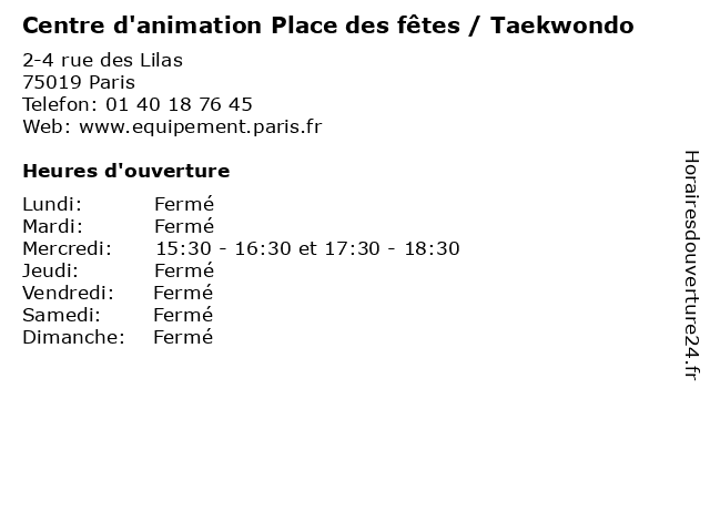 1 Centre d'animation Place des fêtes / Anglais (Distance: 0,00 km) 2-4 rue des Lilas, 75019 Paris anglais, centre, centres d'animation, d'animation, des, equipement, fêtes, jardins, l'heure, livre, médiathèque, place, services 2 Centre d'animation Place des fêtes / Arabe (Distance: 0,00 km) 2-4 rue des Lilas, 75019 Paris arabe, centre, centres d'animation, d'animation, des, equipement, fêtes, jardins, l'heure, livre, médiathèque, place, services 3 Centre d'animation Place des fêtes / Arts Martiaux (Distance: 0,00 km) 2-4 rue des Lilas, 75019 Paris arts, centre, centres d'animation, d'animation, des, equipement, fêtes, jardins, l'heure, livre, martiaux, médiathèque, place, services 4 Centre d'animation Place des fêtes / Arts Plastiques (Distance: 0,00 km) 2-4 rue des Lilas, 75019 Paris arts, centre, centres d'animation, d'animation, des, equipement, fêtes, jardins, l'heure, livre, médiathèque, place, plastiques, services 5 Centre d'animation Solidarité Angèle Mercier / Abdo-Fessiers/Dos/Cuisses (Distance: 0,73 km) 133-135 boulevard Serurier, 75019 Paris abdo, angèle, centre, centres d'animation, d'animation, equipement, fessiers/dos/cuisses, jardins, l'heure, livre, mercier, médiathèque, services, solidarité 6 Centre d'animation Solidarité Angèle Mercier / Aide Aux Devoirs (Distance: 0,73 km) 133-135 boulevard Serurier, 75019 Paris aide, angèle, aux, centre, centres d'animation, d'animation, devoirs, equipement, jardins, l'heure, livre, mercier, médiathèque, services, solidarité |