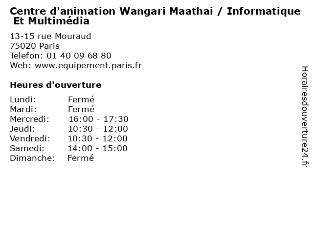1 Centre d'animation Wangari Maathai (Distance: 0,00 km) 13-15 rue Mouraud, 75020 Paris centre, centre d'animation, d'animation, equipement, joyeuse, l'heure, livre, maathai, médiathèque, services, wangari 2 Centre d'animation Wangari Maathai / Abdo-Fessiers/Dos/Cuisses (Distance: 0,00 km) 13-15 rue Mouraud, 75020 Paris abdo, centre, centres d'animation, d'animation, equipement, fessiers/dos/cuisses, jardins, l'heure, livre, maathai, médiathèque, services, wangari 3 Centre d'animation Wangari Maathai / Aide Aux Devoirs (Distance: 0,00 km) 13-15 rue Mouraud, 75020 Paris aide, aux, centre, centres d'animation, d'animation, devoirs, equipement, jardins, l'heure, livre, maathai, médiathèque, services, wangari 4 Centre d'animation Wangari Maathai / Alphabétisation (Distance: 0,00 km) 13-15 rue Mouraud, 75020 Paris alphabétisation, centre, centres d'animation, d'animation, equipement, jardins, l'heure, livre, maathai, médiathèque, services, wangari 5 Centre d'animation Wangari Maathai / Anglais (Distance: 0,00 km) 13-15 rue Mouraud, 75020 Paris anglais, centre, centres d'animation, d'animation, equipement, jardins, l'heure, livre, maathai, médiathèque, services, wangari 6 Centre d'animation Wangari Maathai / Aquarelle (Distance: 0,00 km) 13-15 rue Mouraud, 75020 Paris aquarelle, centre, centres d'animation, d'animation, equipement, jardins, l'heure, livre, maathai, médiathèque, services, wangari |